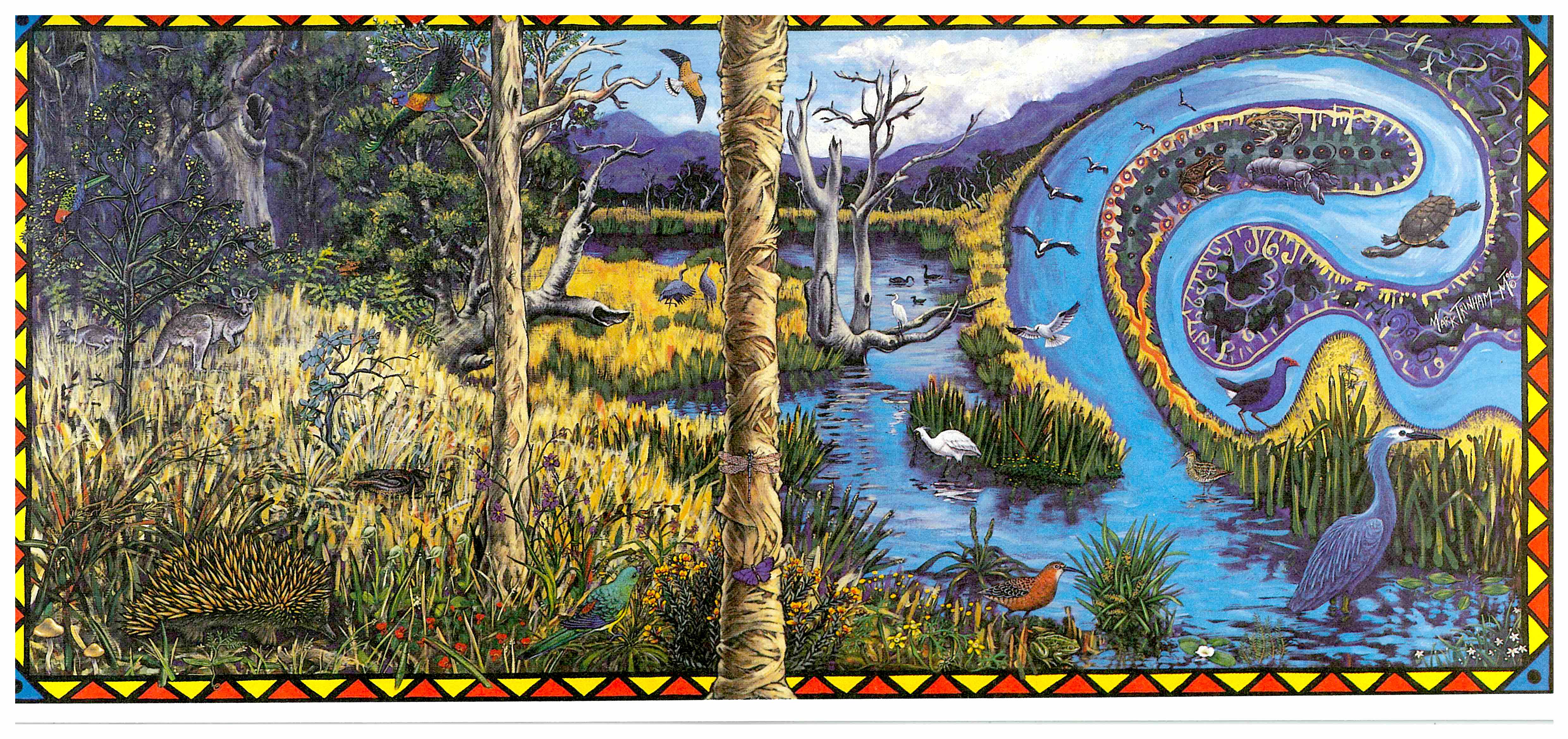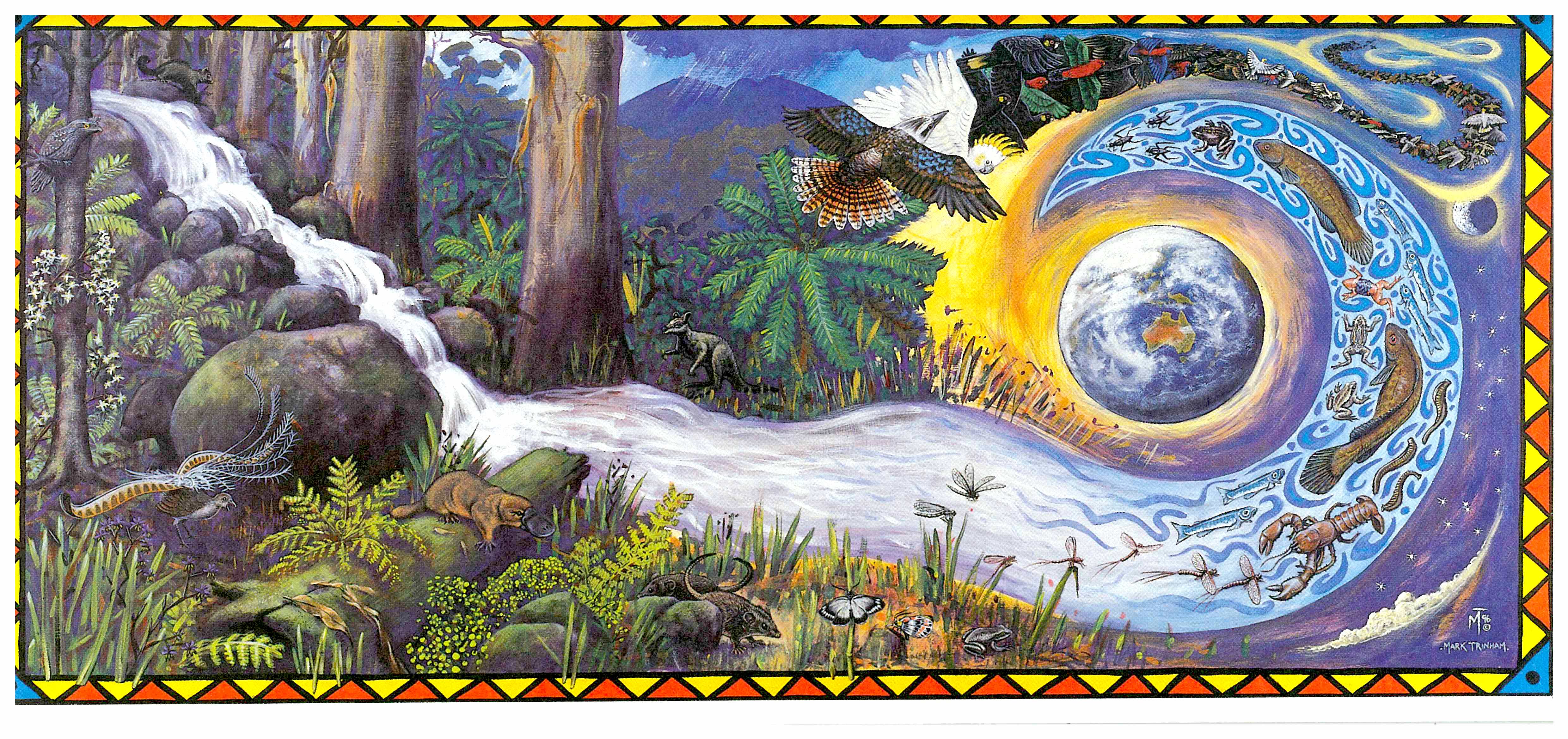 This limited edition set of four posters or cards by renowned Surf Coast artist Mark Trinham was originally designed for Melbourne environment group Bay Rescue in the mid 1990's to highlight concerns over catchment management. All funds raised will go directly to communities fighting mining companies in Ecuador. Printed on 100% post consumer waste paper.